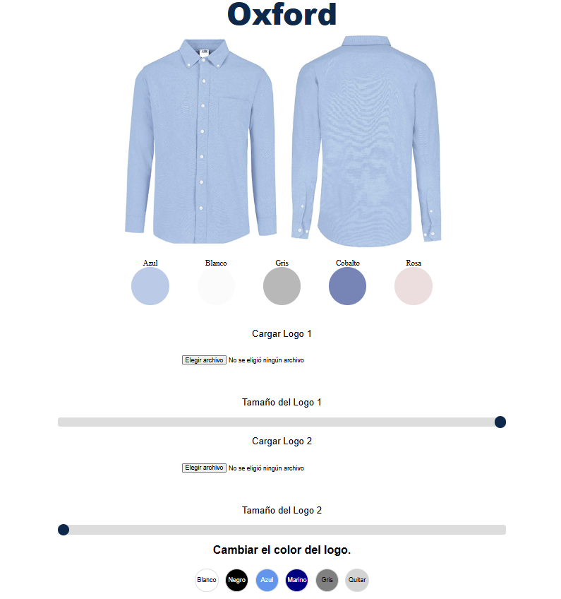 En mi lugar de trabajo, desarrollé una herramienta interactiva que facilita la personalización de prendas. Este sistema permite a los clientes cargar sus logos y visualizar cómo se verían en diferentes colores de ropa, ajustando el tamaño y el color del logo según sus preferencias